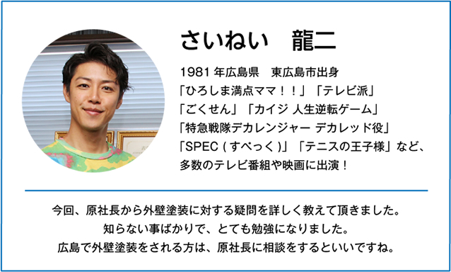 原氏の“外壁塗装"のこだわりについてタレントさいねい籠二が、お話しを伺いました。