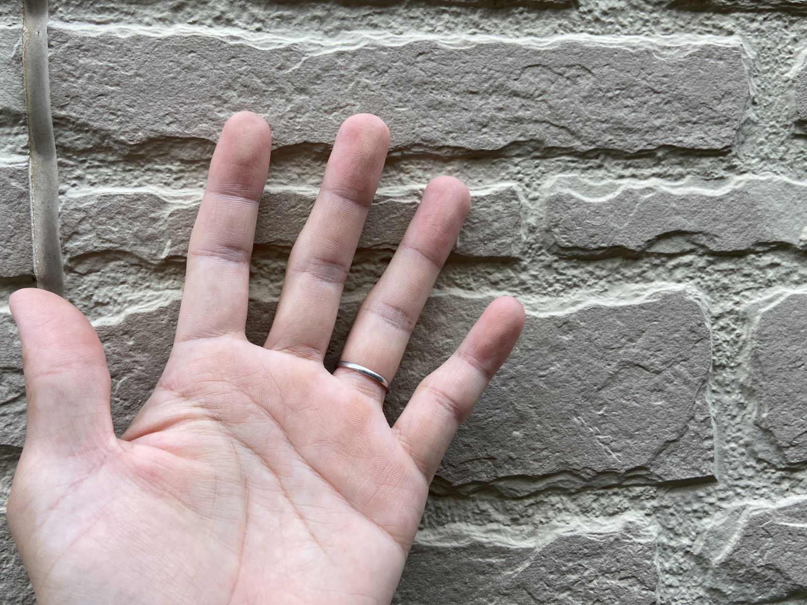壁がチョーキング(白化現象)しています。塗膜の防水性がないため、外壁の塗装が必要。