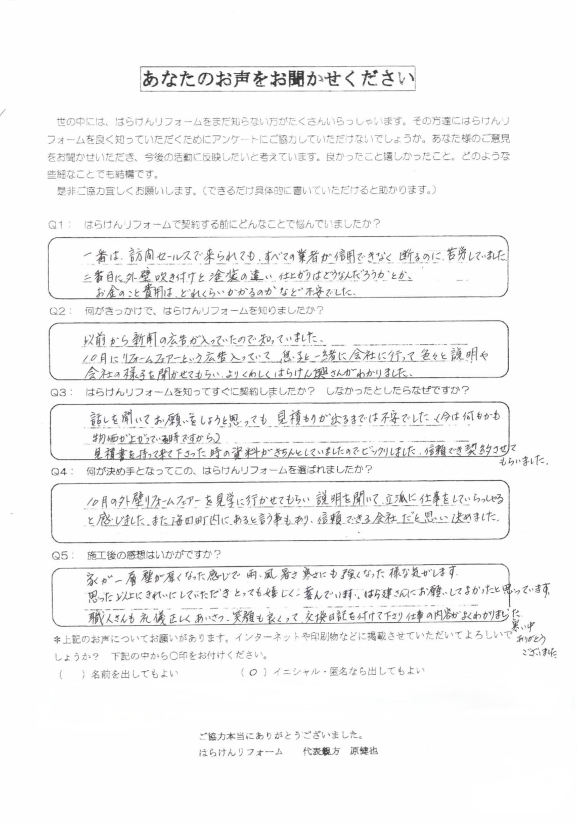 この度おもいきって、塗装会社を探がして、地域の会社と思い、 はらさんリフォームに連絡させていただきました。