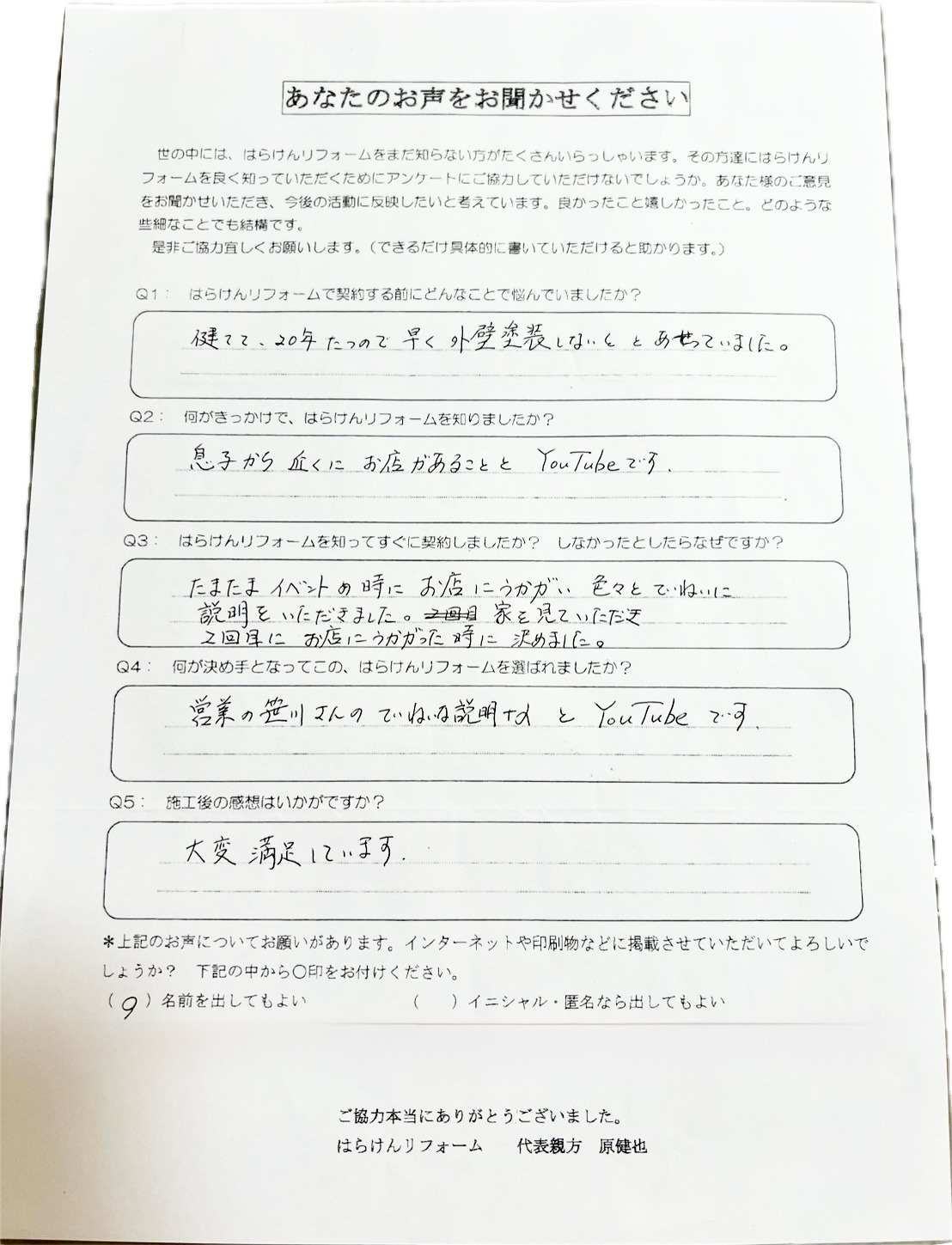 健てて、20年たつので早く外壁塗装しないととあせっていました。