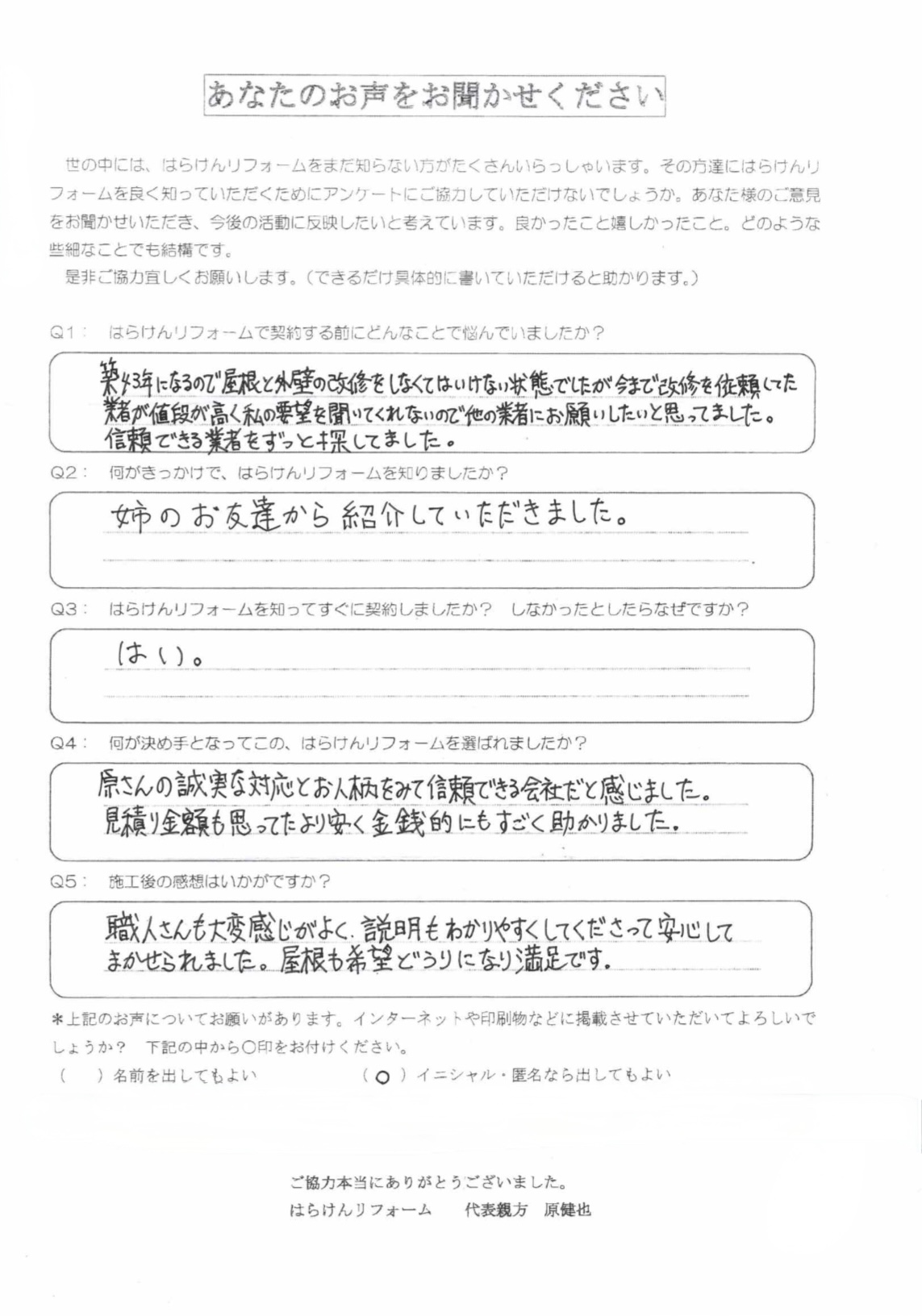 何が決め手となってこの、はらけんリフォームを選ばれましたか?